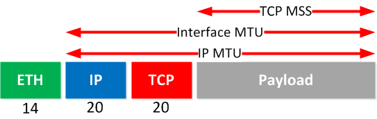 So if the MTU is 1500 bytes and the IP and TCP headers are 20 bytes each the MSS is 1460 bytes. As mentioned earlier the MSS is like the MTU but used with TCP at layer 4. IP MTU is used to determine whether an ip packet needs to be fragmented or not.